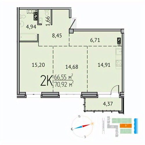 2-комнатные 70,7 м²